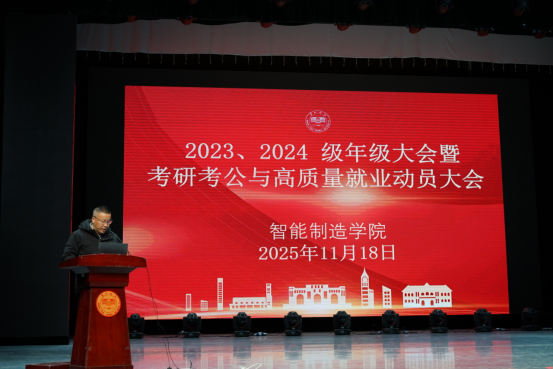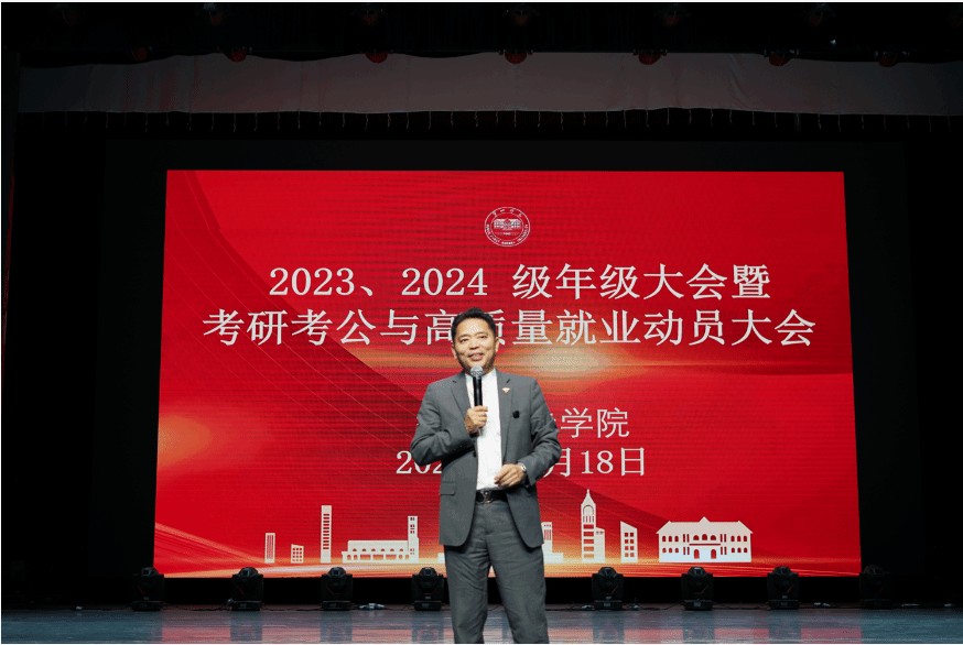 为提高人才培养质量,明晰员工升学就业方向,11月18日晚19:00,公司2023、2024级年级大会暨考研考公与高质量就业动员大会在东方红校区田汉剧场举行。本次大会由公司经理曾进辉、启航考研负责人肖熙哲、考德上董事长田亚东、国防科技大学博士生詹礼新、2023级员工代表叶健海主讲,经理曾进辉、公司党委书记田祖伟、副经理蔡颂、副经理马俊杰出席会议。学工办全体老师、系主任、双创中心主任、考研及电网班负责人、公司2023和2024级全体员工参加会议。会议由公司党委书记田祖伟主持。